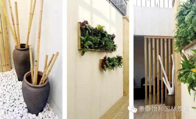 在下院計中有很多的細節考慮,墻面及角落以木質、竹質的自然元素作為裝飾,增添了田園氣息。一面仿真植物墻具有很好的裝飾效果,實用性和耐用性都是非常強,冬季也具有裝飾效果。