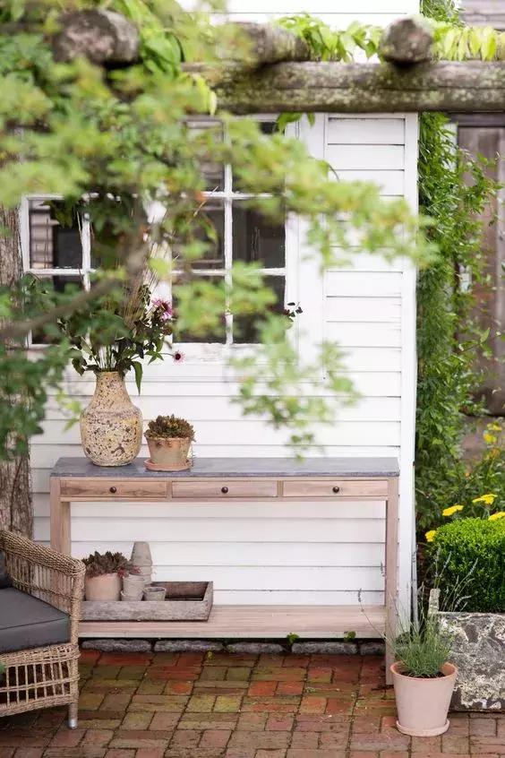 對無法管理花園的人,用絢麗的盆栽配合天然質地的室外家具,不僅節省空間,也易于打理。盆栽便于擺放和更換,所以特別適合缺乏種植經驗或沒有時間打理、照料植物的家庭。